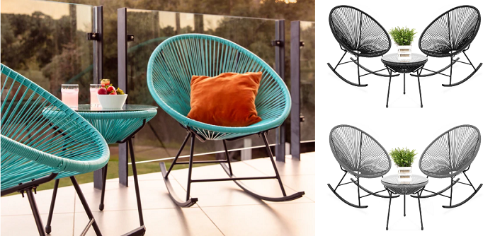 3-Piece Patio Woven Rope Acapulco Rocking Chair Bistro Set for $219.99 (Reg $399.99)