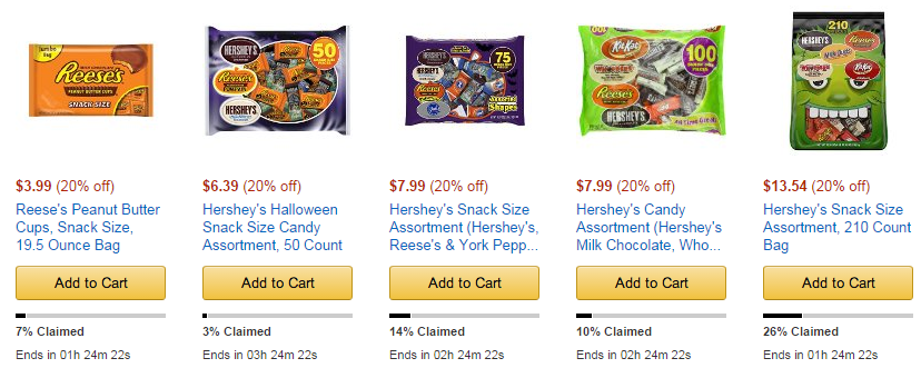 They are having Halloween candy lightning deals all day! There are some AMAZING prices. And with your Prime two-day shipping you will have them in time to pass out to the little trick-or-treaters.