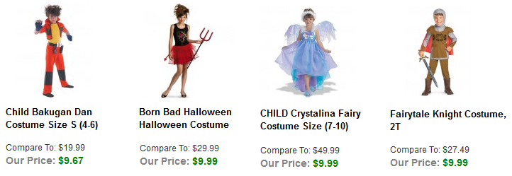 They have costumes as low as $9, so that means you could get 4 costumes for $18!