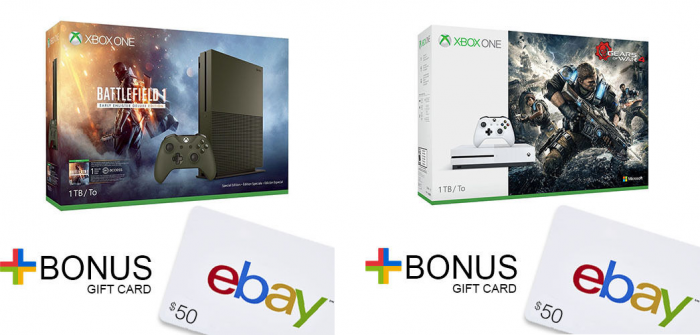 Xbox One S 1TB Console – Gears of War 4 Edition + $50 eBay Gift Card w/ purchase for $299.99