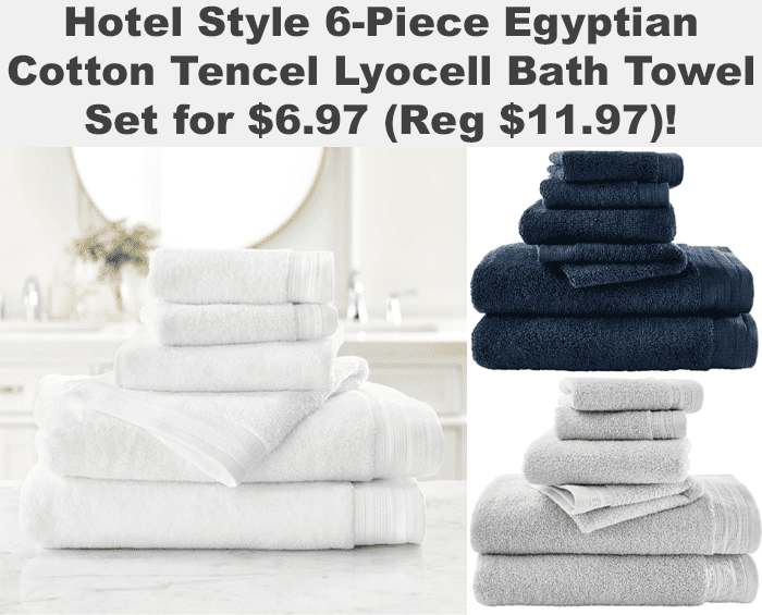 Hotel Style 6-Piece Egyptian Cotton Tencel Lyocell Bath Towel Set for $6.97 (Reg $11.97)!