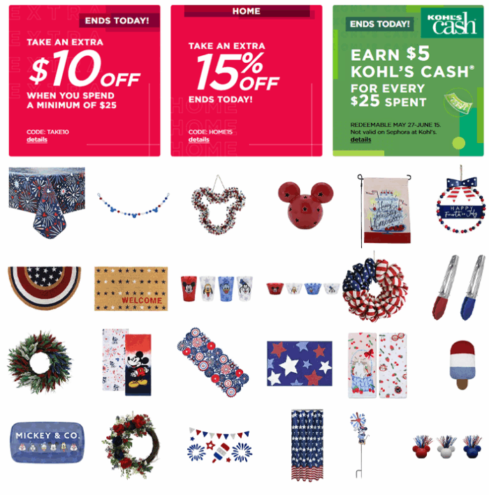 Earn $5 Kohl’s Cash for every $25 spent through today May 26, redeemable May 27-June 15.