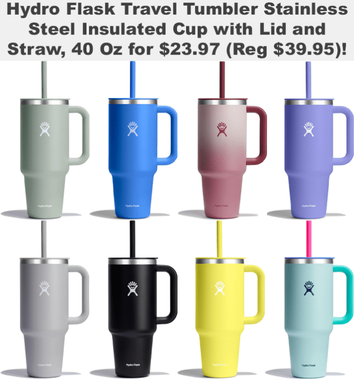 Hydro Flask Travel Tumbler Stainless Steel Insulated Cup with Lid and Straw, 40 Oz for $23.97 (Reg $39.95)!