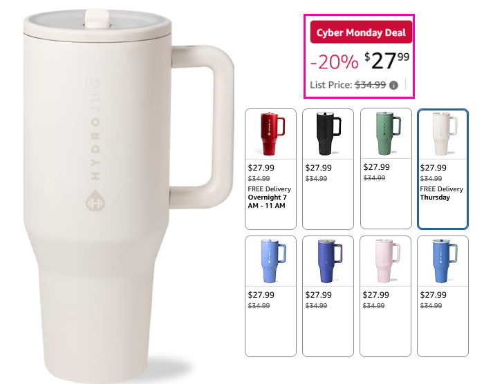 HydroJug Traveler Insulated Stainless Steel Water Bottle with Handle & Flip Straw, 32 oz for $27.99 (Reg $34.99), 40 oz for $31.99 (Reg $39.99)!