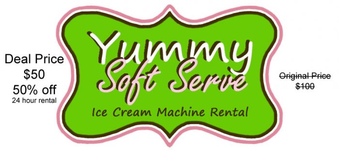 Do you like love ice cream?! I know that I do! When I came across this deal, I just knew that I had to share it with you. Yummy Soft Serve is offering their Ice Cream Machine Rental to Utahns for 50% off their usual price! That’s right. You could make amazing ice cream for a birthday party, wedding reception, or any other celebration (or any other regular day that you just feel that you need ice cream) for $50!