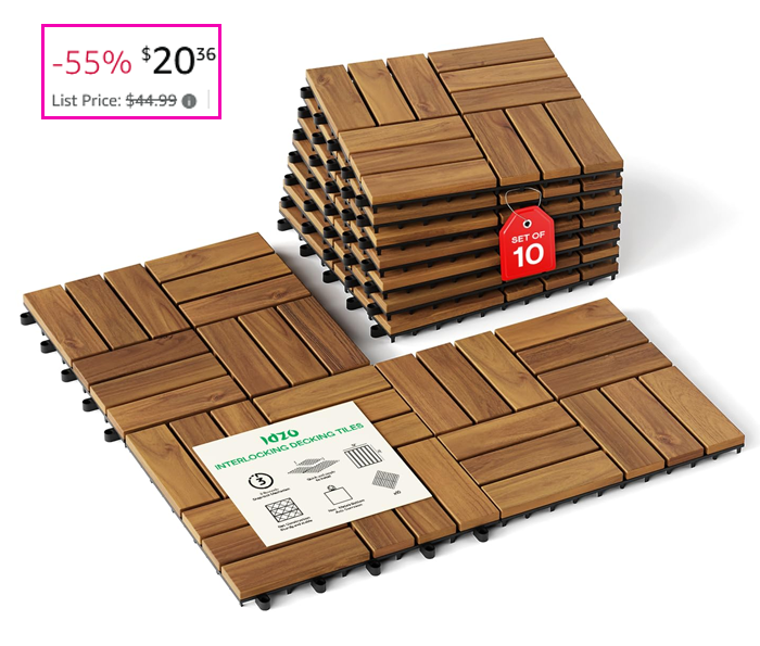 Idzo Interlocking Deck Tiles 9.6 SQFT – 10PCS for $20.36 (Reg $44.99)!