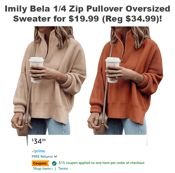 Imily Bela 1/4 Zip Pullover Oversized Sweater for $19.99 (Reg $34.99)!