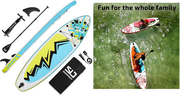 - LEAK-PROOF MATERIAL: This isn’t a cheap pool floatie. Swonder paddleboards use military-grade PVC with double-layered sidewalls to distribute air evenly while keeping the integrity of the paddleboard’s shape.