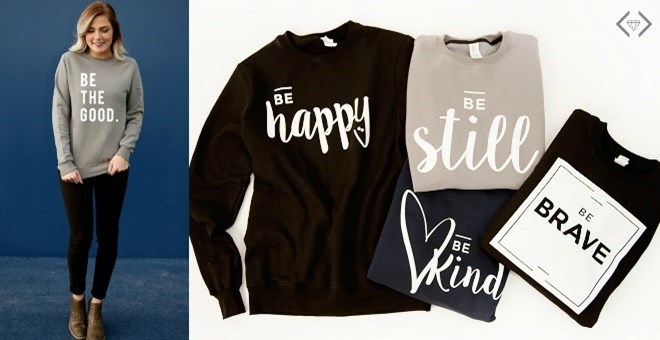 These super cute Inspirational “Be” Sweatshirts are only $14.99 right now! Dress them up with your favorite skinny jeans and ankle boots for a girls night out, or dress ’em down with jogger sweats for a diet coke run!