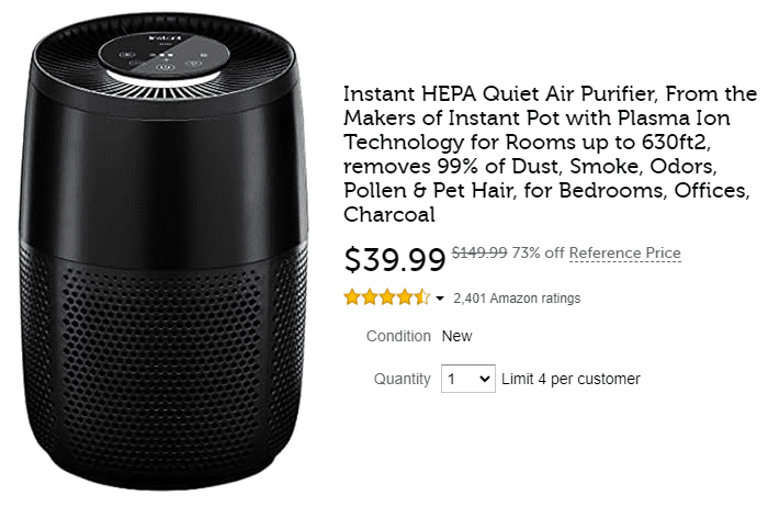 Instant HEPA Quiet Air Purifier for $39.99 (Reg $149.99)! *ENDS TONIGHT!*