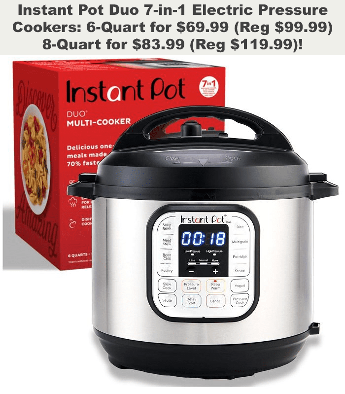Instant Pot Duo 6-Quart 7-in-1 Electric Pressure Cooker for $64.99 (Reg $109.99)!