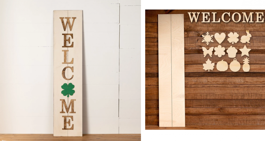 - Laser-cut 5.25″ letters “WELCOME” –Unfinished
