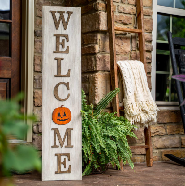This seasonal welcome sign kit is the perfect size for your front porch, office, or classroom.