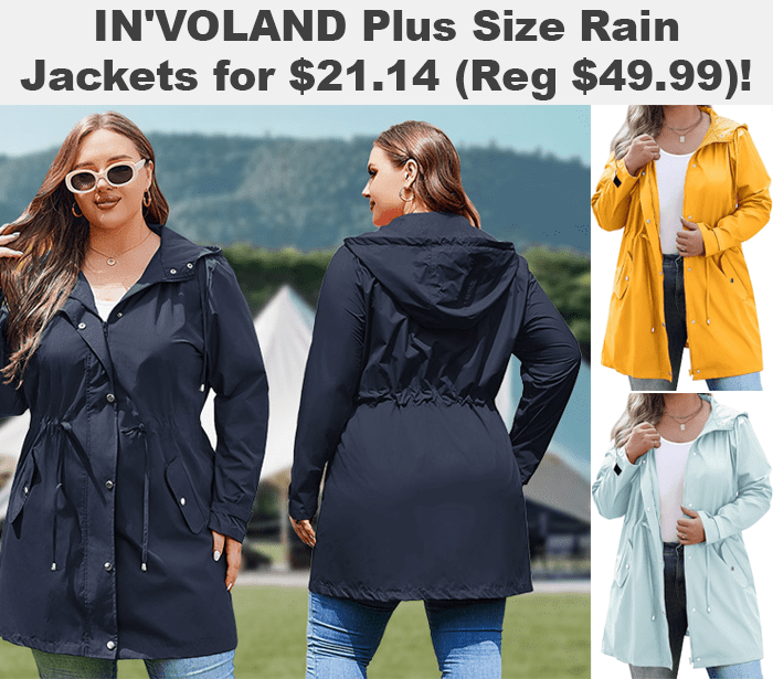 IN’VOLAND Plus Size Rain Jackets for $35.99 (Reg $44.99)