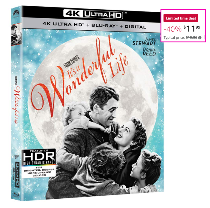 It’s a Wonderful Life (4K UHD + Blu-ray + Digital) for $11.99 (Reg $19.96)!