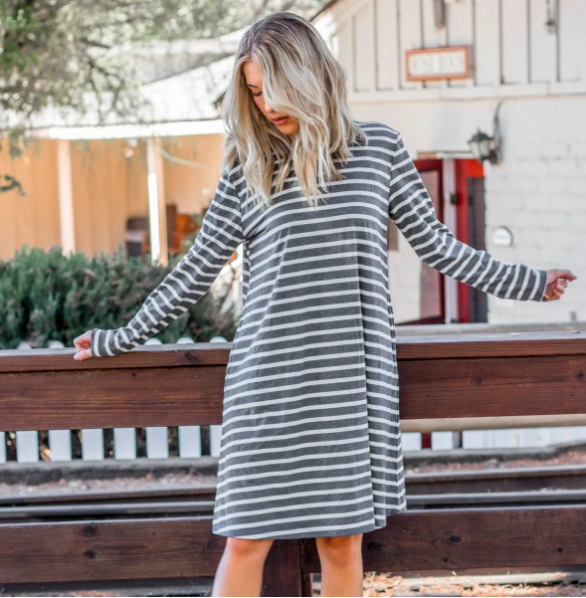 You can’t go wrong with this lovable basic striped dress! Your teens will love this dress!