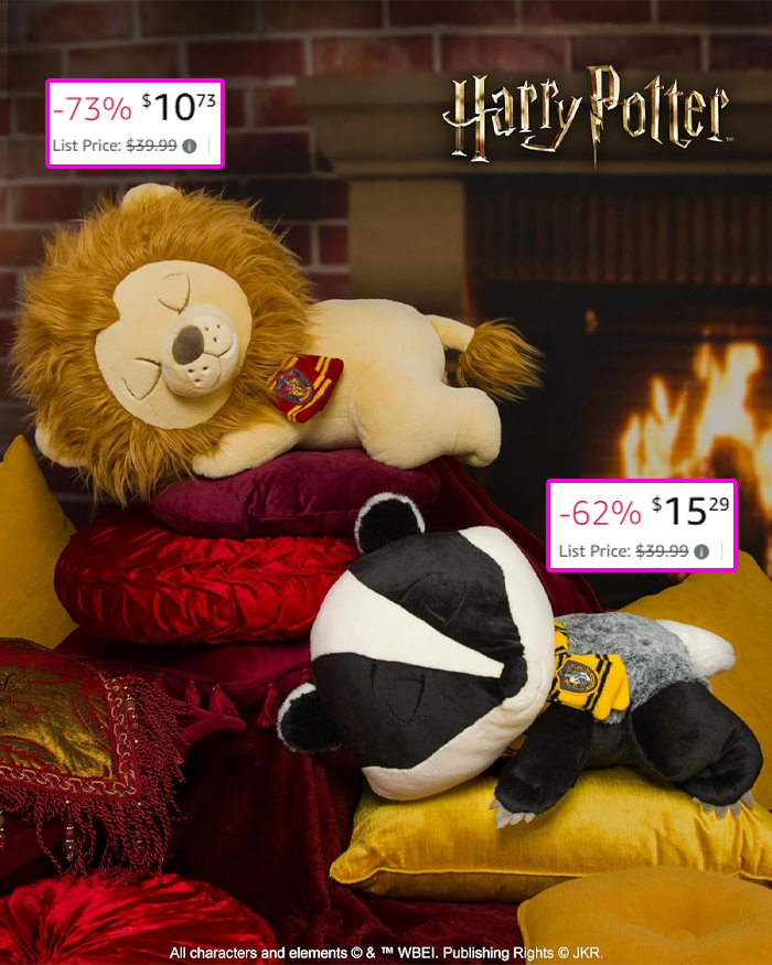 These are the most adorable plushies ever! The Gryffindor Lion and Hufflepuff Badger are the best prices, but the Ravenclaw Raven and Slytherin Snake are also on sale. Hurry to get them before the prices go back up!