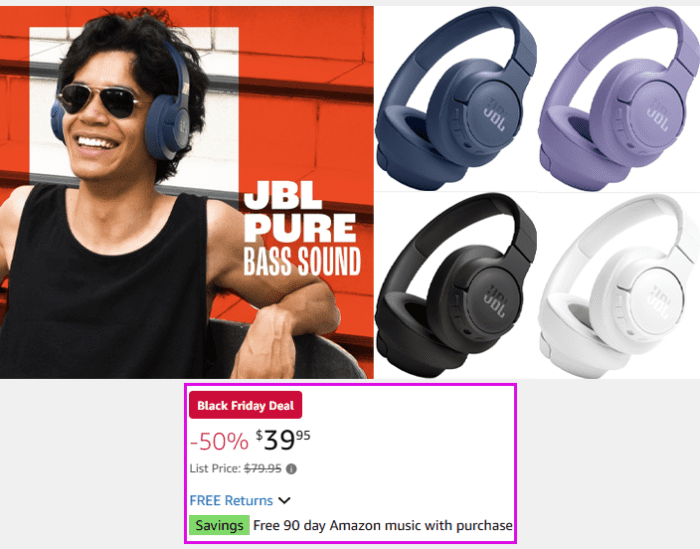 JBL Tune 720BT – Wireless Over-Ear Headphones for $39.95 (Reg $79.95)!
