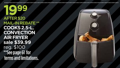 Cooks 2.5-L. Convection Air Fryer $19.99 (reg $100) AFTER $20 MAIL-IN REBATE**