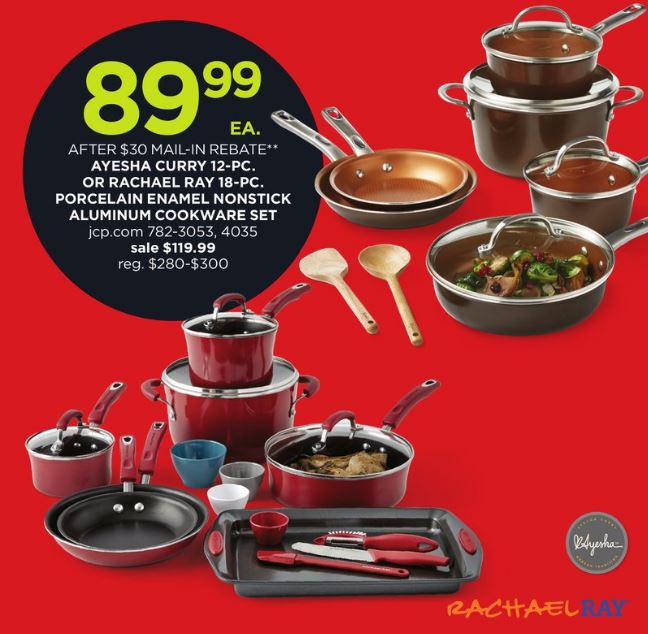 Rachael Ray 18-Pc. Porcelain Enamel Nonstick Aluminum Cookware Set for $119.99 (reg $300)