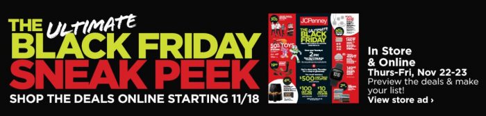 Store open at 2 pm on Thursday, November 22 (Thanksgiving) and the sale will go through Friday, November 23. In-store shoppers have a chance of winning a $500 off $500 super-savings coupon, or $100 off $100 or $10 off $10 instant-savings coupons! Online shopping will take place all day at JCP.com!