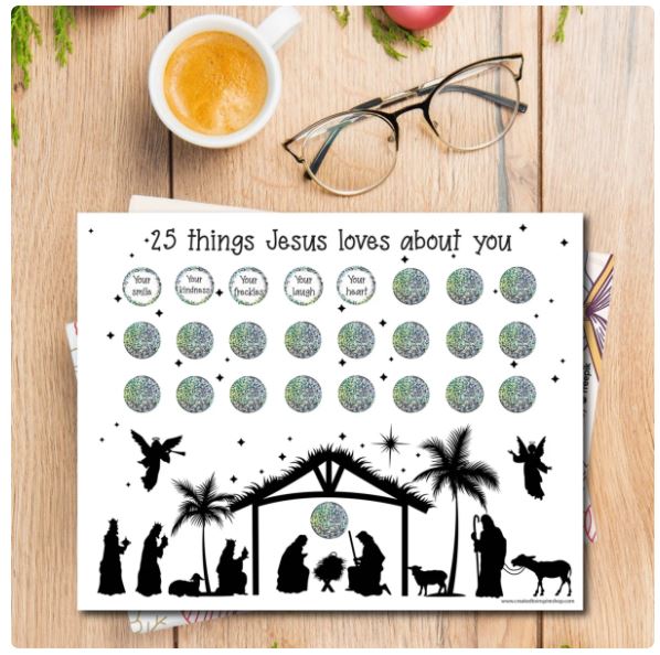 This is such a thoughtful, unique way of counting down to the holidays! You can frame these once they’re all scratched off as a reminder of why Jesus loves them very much.