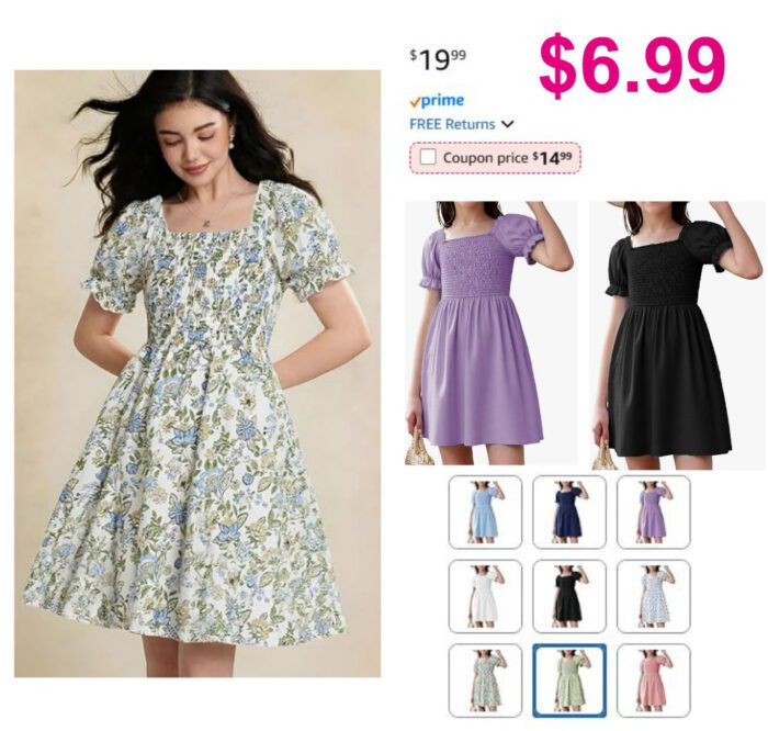 JiAmy Girls Summer Puff Sleeve Dresses $6.99 (reg $19.99)