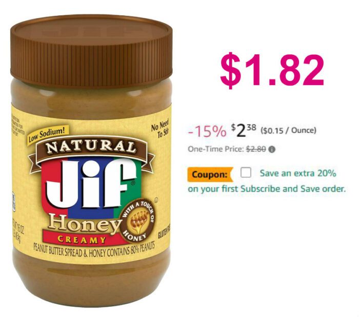 Jif Natural Creamy Peanut Butter Spread and Honey for $2.78 (reg $3.12)