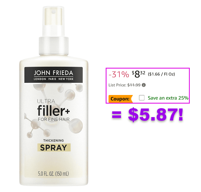 John Frieda ULTRAfiller+ for Fine Hair, Volumizing, Biotin and Hyaluronic Acid Hair Thickening Spray, 5 Oz for $9.79 (Reg $11.99)