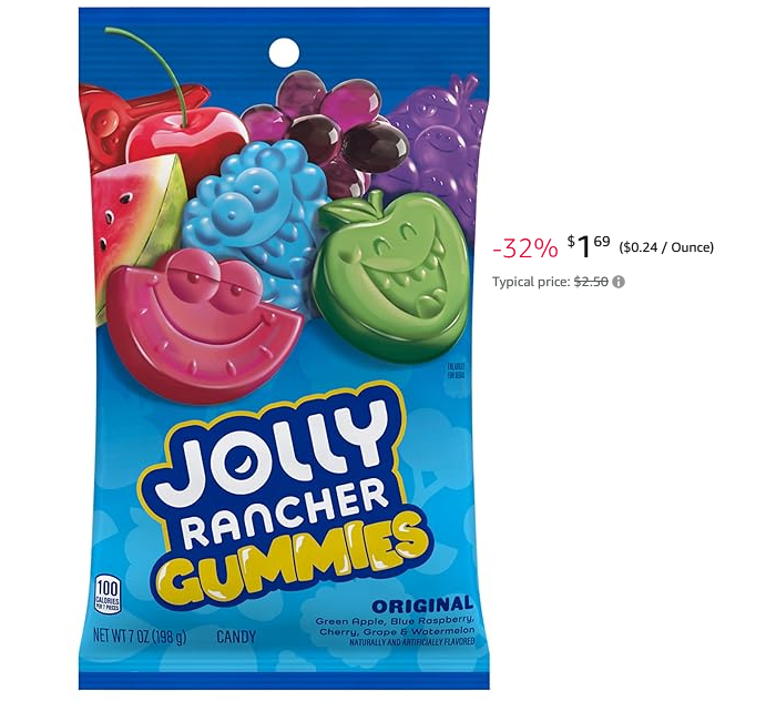 JOLLY RANCHER Gummies Assorted Fruit Flavored Candy Bag, 7 oz for $1.99 (Reg $2.50)