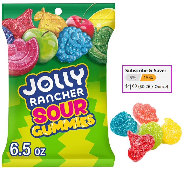 JOLLY RANCHER Sour Gummies Assorted Fruit Flavored Candy Bag, 6.5 oz for $1.99(Reg $2.99)!