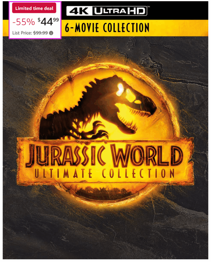 Jurassic World Ultimate Collection – 4K Ultra HD + Blu-ray + Digital [4K UHD] for $44.99 (Reg $99.99)!