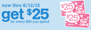 Plus now through August 12 you’ll receive $25 for every $50 you spend, to be used on a future purchase of $50 or more.