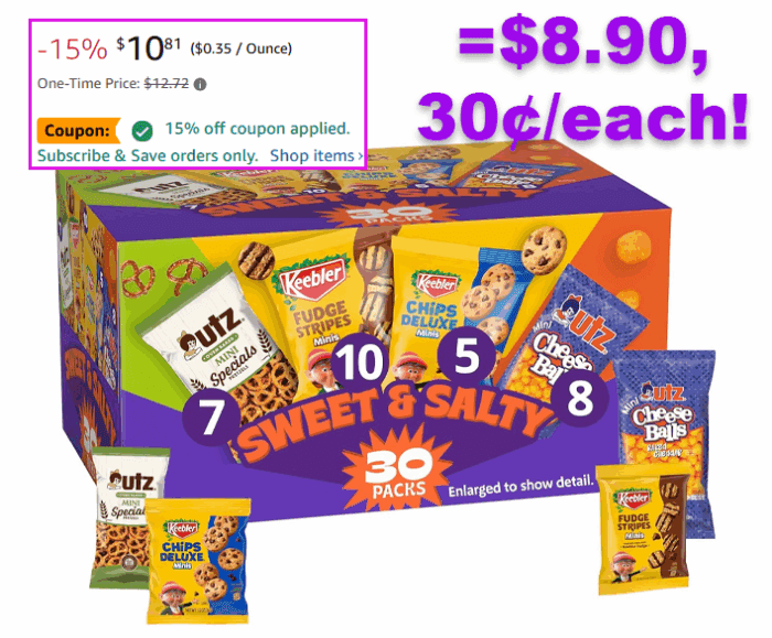 Keebler Cookies and Crackers, Variety Pack, 30 Ct for $12.72