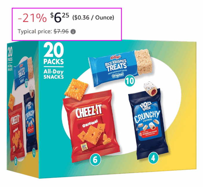 Kellogg’s Cheez-It, Pop-Tarts & Rice Krispies Treats All-Day Snacks Variety Pack, 17.6oz Box (20 Count) for $6.58 (Reg $7.96)
