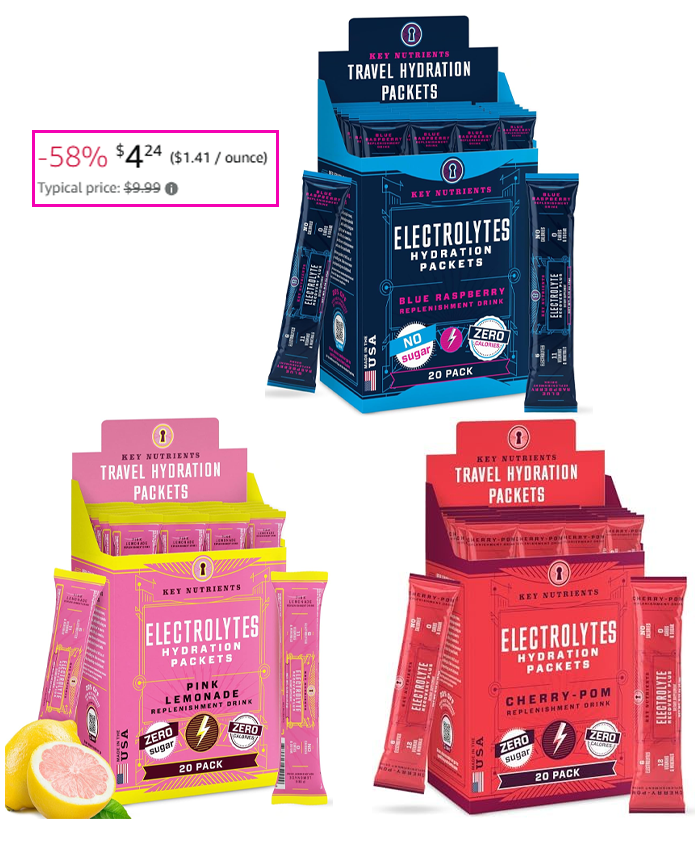 KEY NUTRIENTS Electrolytes Powder Packets 20 Pack for $4.24 (Reg $9.99)!