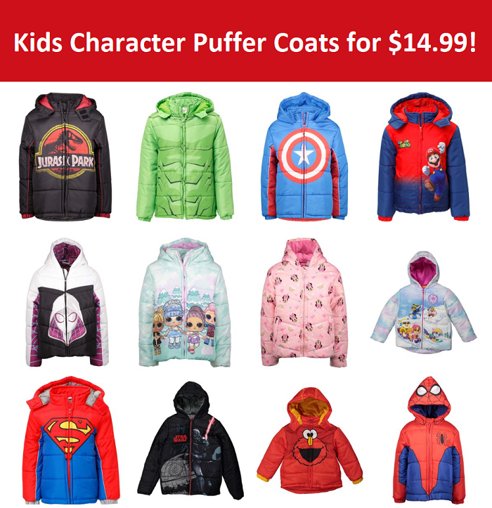 Your kids will be happy to wear a coat out of the house with these adorable designs! Sizes range from 12-months to 10/12.