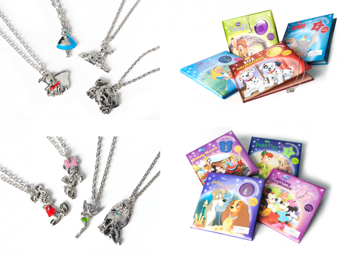Disney Charm Book 4-Pack for $15. Choose from two different sets. Includes a charm necklace.