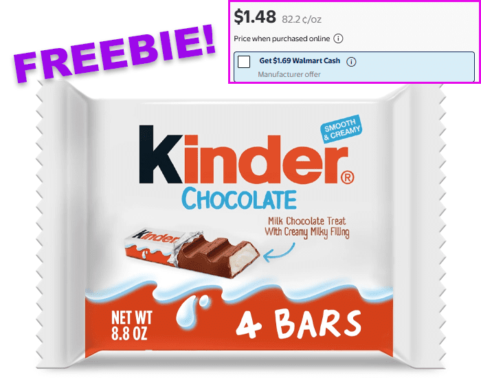 Kinder Chocolate, 4 Bars for $1.48 + Earn $1.69 Walmart Cash!
