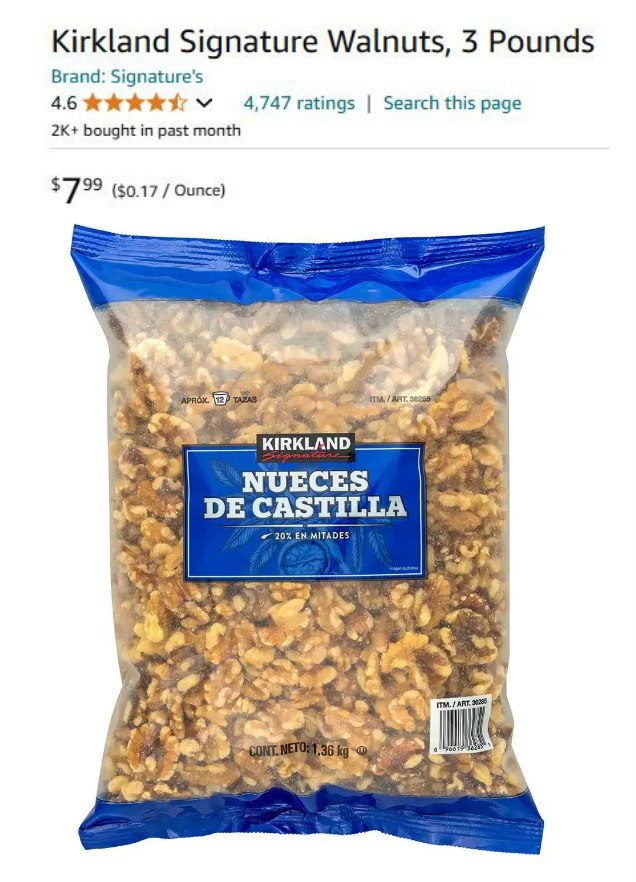 Kirkland Signature Walnuts, 3 Pounds $7.99