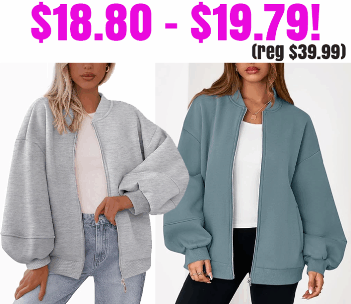 KIRUNDO Oversized Bomber Sweatshirt Jackets for $34.19 – $35.99 (Reg $39.99)