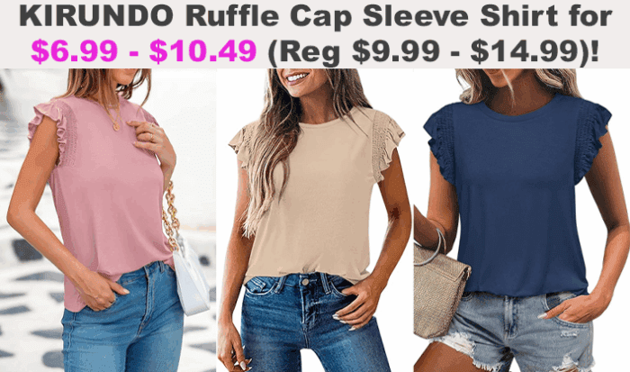 KIRUNDO Ruffle Cap Sleeve Shirt for $9.99 – $14.99