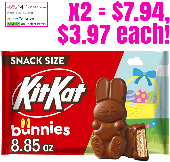 KIT KAT Milk Chocolate Wafer Snack Size Bunnies, Easter Candy Bag, 8.85 oz for $4.97 (Reg $5.29)