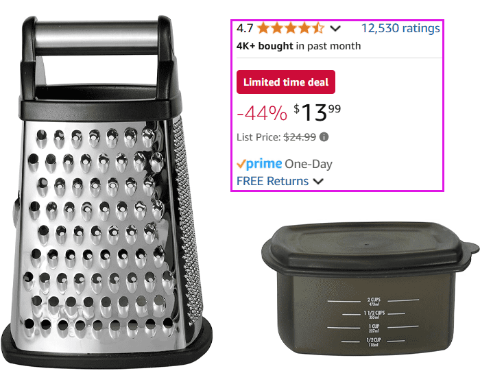 KitchenAid Gourmet 4-Sided Stainless Steel Box Grater + Detachable 3 Cup Storage Container for $13.00 (Reg $24.99)!
