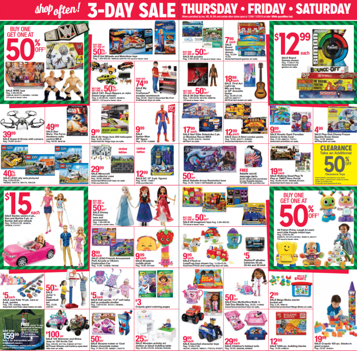 There are seriously SO many toy and game deals. Click the above image to make it larger to view it, or head over HERE to check out the full ad. Plus, these deals are all good Thursday through Saturday (while supplies last).