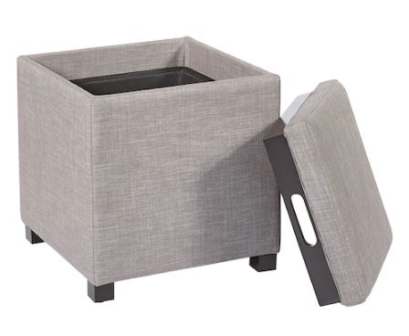 The Carter storage ottoman comes in 4 colors and has a lid that doubles as a tray table.