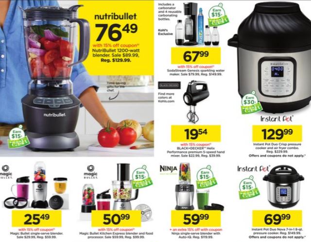The 15% off code will not work on the following deals but you will still earn Kohl’s Cash: