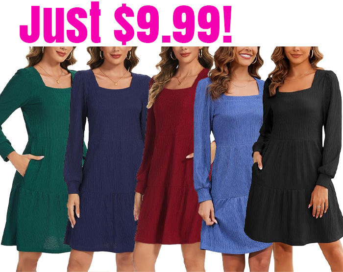 These are cute textured dresses! I love the square neckline. They have pockets, too!