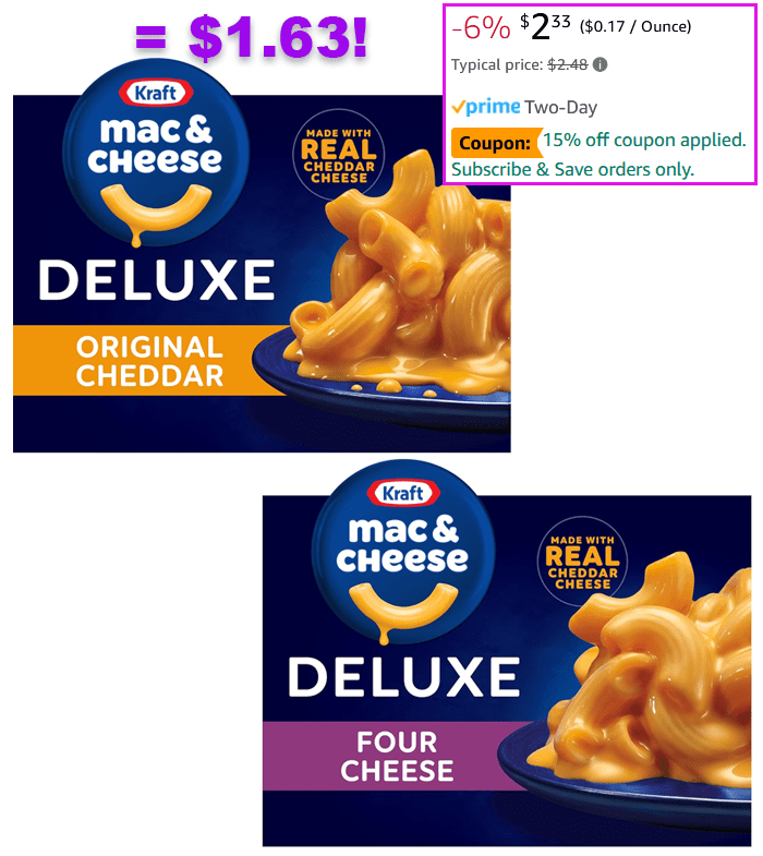 Kraft Deluxe Macaroni & Cheese Dinner, 14 oz Box for $2.33 (Reg $2.48)