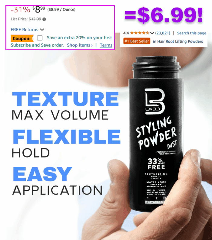 You can also try the L3 Level 3 Light Hold Styling Powder for $8.09 – $8.99 (reg $9.99).